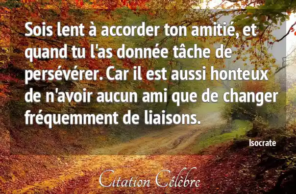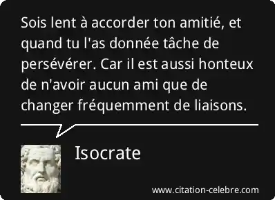 Sois lent à accorder ton amitié, et quand tu l'as donnée tâche de persévérer. Car il est aussi honteux de n'avoir aucun ami que de changer fréquemment de liaisons.