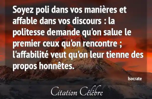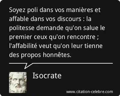 Soyez poli dans vos manières et affable dans vos discours : la politesse demande qu'on salue le premier ceux qu'on rencontre ; l'affabilité veut qu'on leur tienne des propos honnêtes.