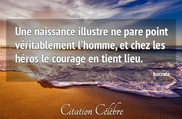 Une naissance illustre ne pare point véritablement l'homme, et chez les héros le courage en tient lieu.