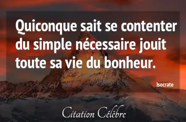 Quiconque sait se contenter du simple nécessaire jouit toute sa vie du bonheur.