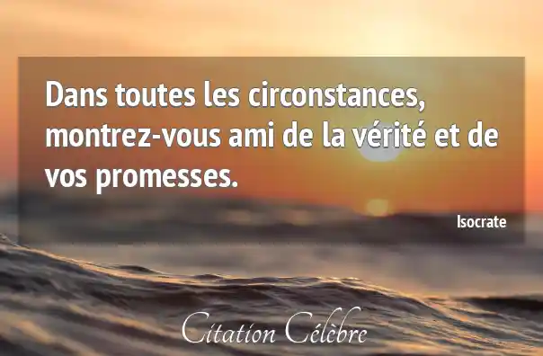 Dans toutes les circonstances, montrez-vous ami de la vérité et de vos promesses.