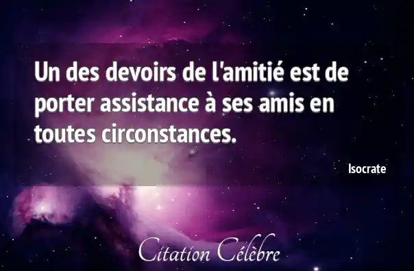 Un des devoirs de l'amitié est de porter assistance à ses amis en toutes circonstances.