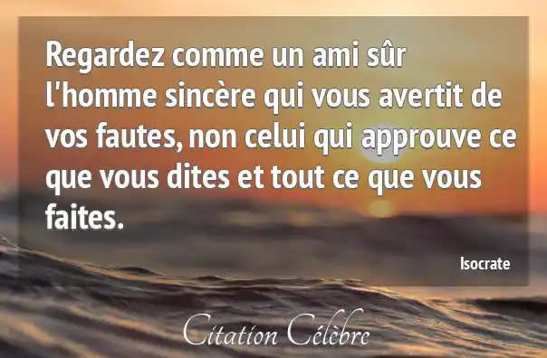 Regardez comme un ami sûr l'homme sincère qui vous avertit de vos fautes, non celui qui approuve ce que vous dites et tout ce que vous faites.