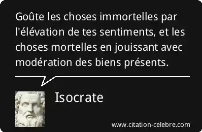 Goûte les choses immortelles par l'élévation de tes sentiments, et les choses mortelles en jouissant avec modération des biens présents.