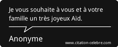 Je vous souhaite à vous et à votre famille un très joyeux Aïd.