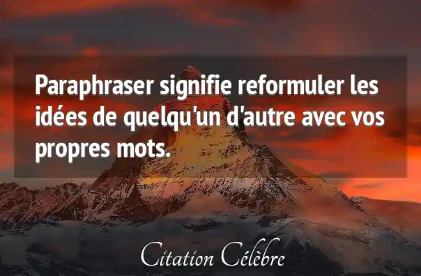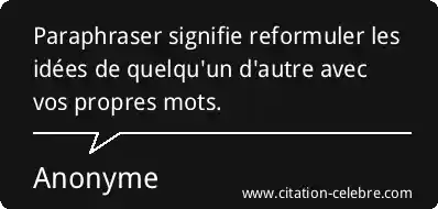 Paraphraser signifie reformuler les idées de quelqu'un d'autre avec vos propres mots.