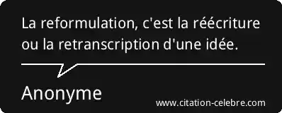 La reformulation, c'est la réécriture ou la retranscription d'une idée.