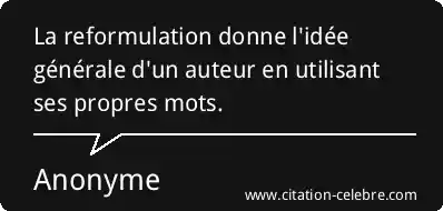 La reformulation donne l'idée générale d'un auteur en utilisant ses propres mots.