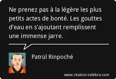 Ne prenez pas à la légère les plus petits actes de bonté. Les gouttes d'eau en s'ajoutant remplissent une immense jarre.