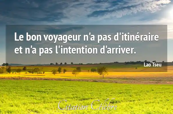 Le bon voyageur n'a pas d'itinéraire et n'a pas l'intention d'arriver.