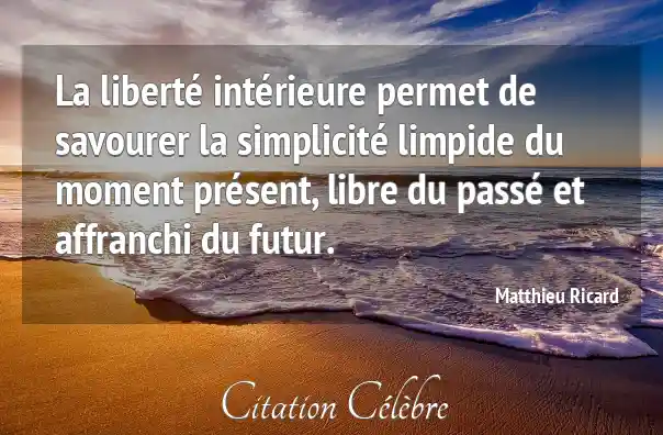 La liberté intérieure permet de savourer la simplicité limpide du moment présent, libre du passé et affranchi du futur.