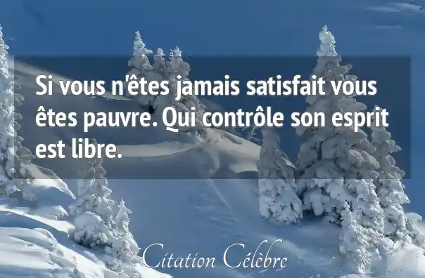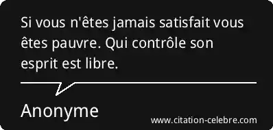 Si vous n'êtes jamais satisfait vous êtes pauvre. Qui contrôle son esprit est libre.