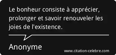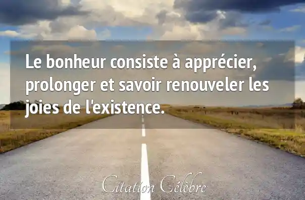 Le bonheur consiste à apprécier, prolonger et savoir renouveler les joies de l'existence.