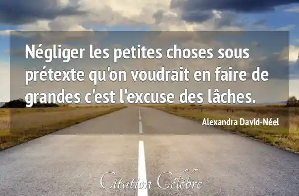 Négliger les petites choses sous prétexte qu'on voudrait en faire de grandes c'est l'excuse des lâches.