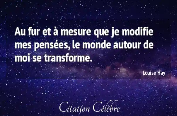 Au fur et à mesure que je modifie mes pensées, le monde autour de moi se transforme.