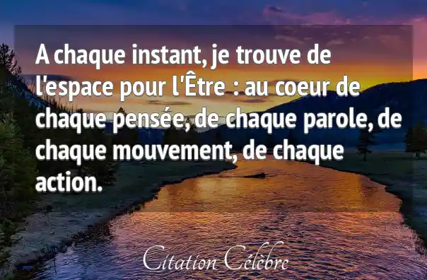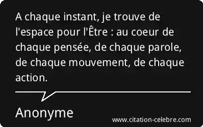 A chaque instant, je trouve de l'espace pour l'Être : au coeur de chaque pensée, de chaque parole, de chaque mouvement, de chaque action.