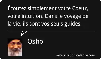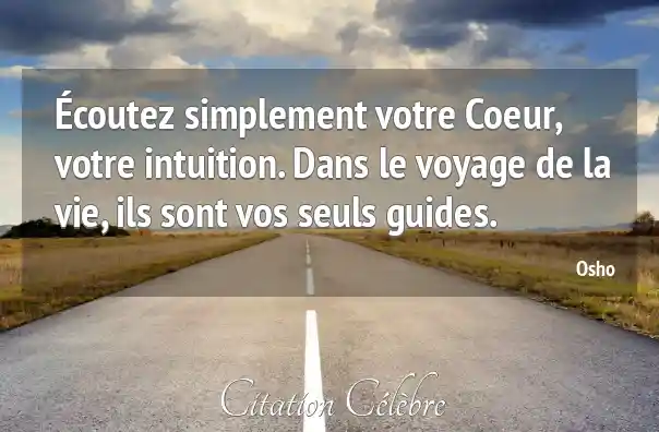 Écoutez simplement votre Coeur, votre intuition. Dans le voyage de la vie, ils sont vos seuls guides.