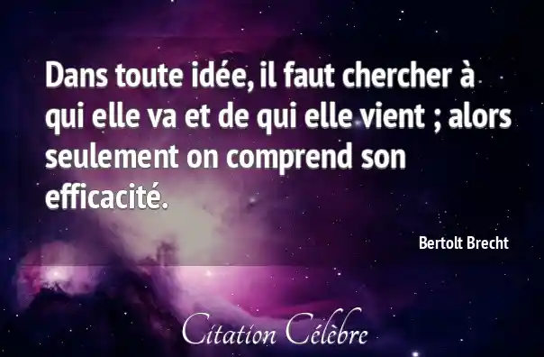 Dans toute idée, il faut chercher à qui elle va et de qui elle vient ; alors seulement on comprend son efficacité.