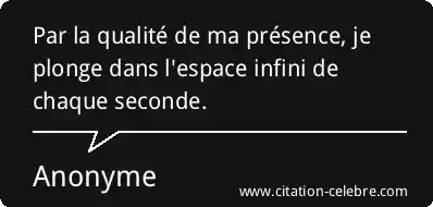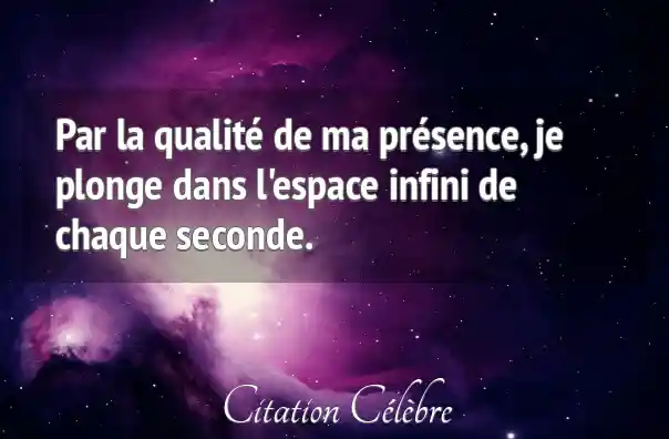 Par la qualité de ma présence, je plonge dans l'espace infini de chaque seconde.