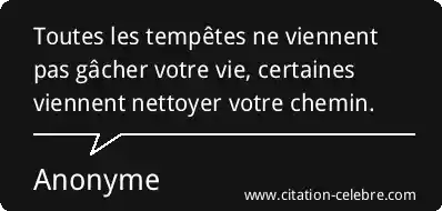 Cette phrase est une puissante métaphore qui invite à une relecture positive des épreuves de la vie. La « tempête » symbolise les difficultés, les crises, les changements soudains ou les moments de turbulence (pertes d'emploi, ruptures, maladies, etc.) qui, à première vue, semblent ne faire que gâcher ou détruire. L'idée est que ces événements ne sont pas uniquement des forces destructrices ; ils peuvent aussi jouer un rôle de purification et de redirection, en éliminant ce qui est inutile ou néfaste.