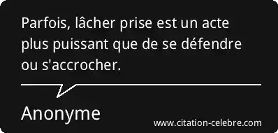 Parfois, lâcher prise est un acte plus puissant que de se défendre ou s'accrocher.