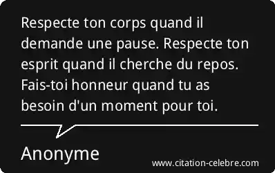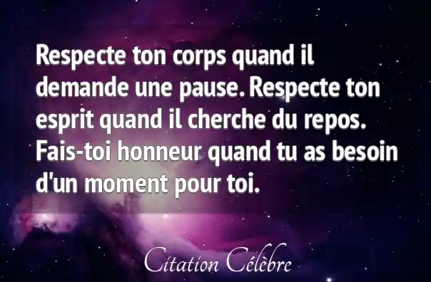 Respecte ton corps quand il demande une pause. Respecte ton esprit quand il cherche du repos. Fais-toi honneur quand tu as besoin d'un moment pour toi.