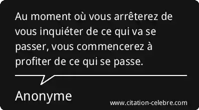Au moment où vous arrêterez de vous inquiéter de ce qui va se passer, vous commencerez à profiter de ce qui se passe.