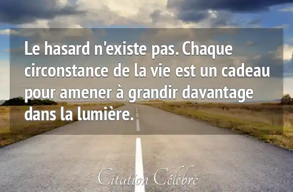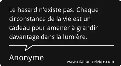 Le hasard n'existe pas. Chaque circonstance de la vie est un cadeau pour amener à grandir davantage dans la lumière.