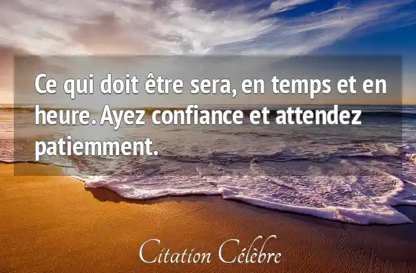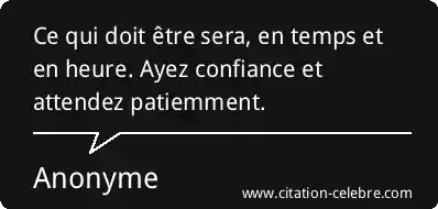 Ce qui doit être sera, en temps et en heure. Ayez confiance et attendez patiemment.