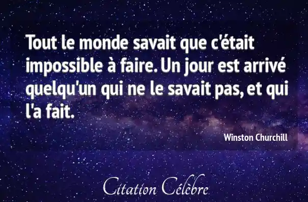 Tout le monde savait que c'était impossible à faire. Un jour est arrivé quelqu'un qui ne le savait pas, et qui l'a fait.