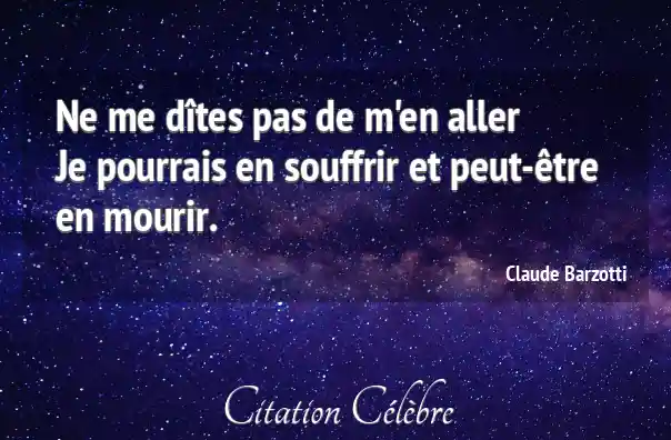 Ne me dîtes pas de m'en allerJe pourrais en souffrir et peut-être en mourir.