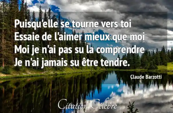 Puisqu'elle se tourne vers toiEssaie de l'aimer mieux que moiMoi je n'ai pas su la comprendreJe n'ai jamais su être tendre.
