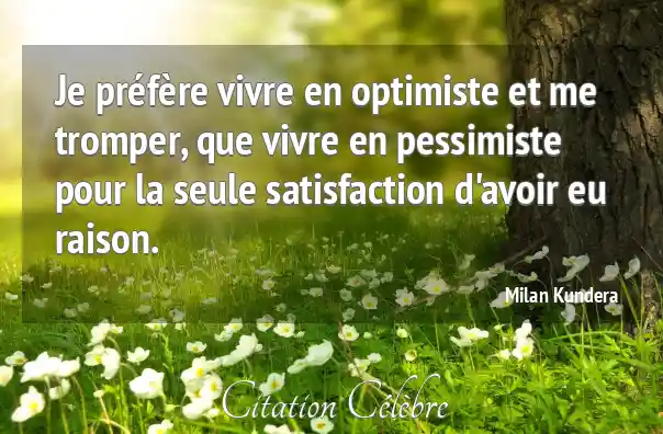 Je préfère vivre en optimiste et me tromper, que vivre en pessimiste pour la seule satisfaction d'avoir eu raison.