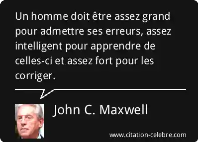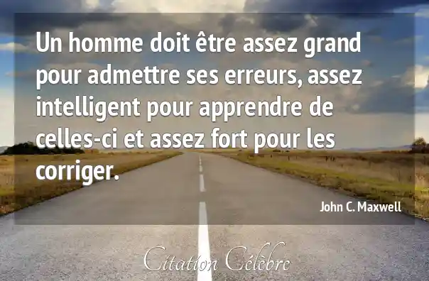 Un homme doit être assez grand pour admettre ses erreurs, assez intelligent pour apprendre de celles-ci et assez fort pour les corriger.