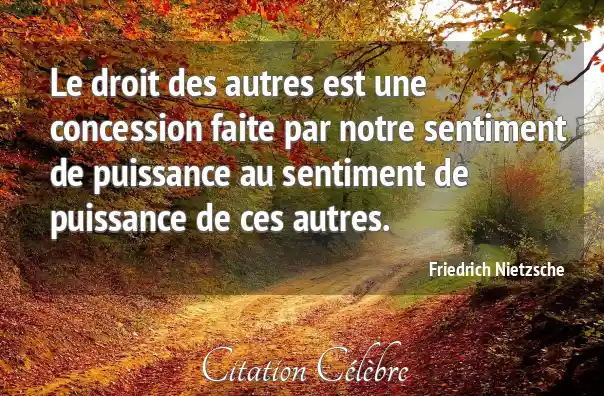 Le droit des autres est une concession faite par notre sentiment de puissance au sentiment de puissance de ces autres.