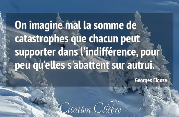 On imagine mal la somme de catastrophes que chacun peut supporter dans l'indifférence, pour peu qu'elles s'abattent sur autrui.
