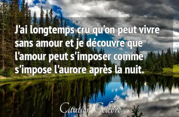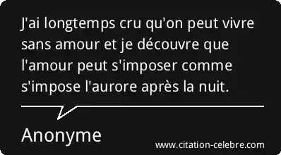J'ai longtemps cru qu'on peut vivre sans amour et je découvre que l'amour peut s'imposer comme s'impose l'aurore après la nuit.