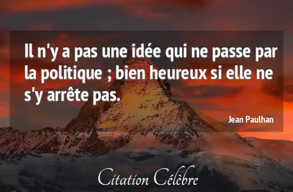 Il n'y a pas une idée qui ne passe par la politique ; bien heureux si elle ne s'y arrête pas.