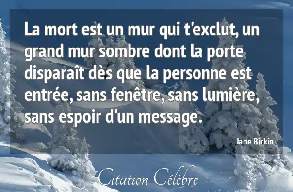 La mort est un mur qui t'exclut, un grand mur sombre dont la porte disparaît dès que la personne est entrée, sans fenêtre, sans lumière, sans espoir d'un message.