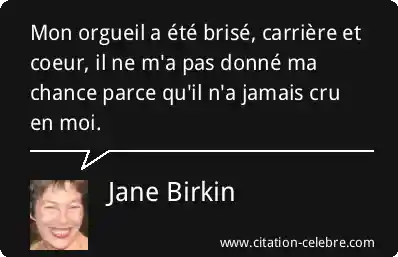 Mon orgueil a été brisé, carrière et coeur, il ne m'a pas donné ma chance parce qu'il n'a jamais cru en moi.