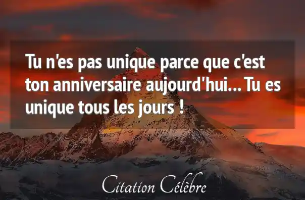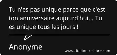 Tu n'es pas unique parce que c'est ton anniversaire aujourd'hui... Tu es unique tous les jours !
