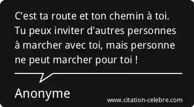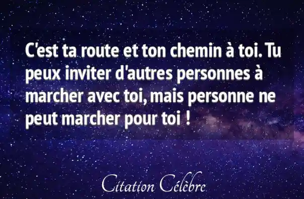C'est ta route et ton chemin à toi. Tu peux inviter d'autres personnes à marcher avec toi, mais personne ne peut marcher pour toi !
