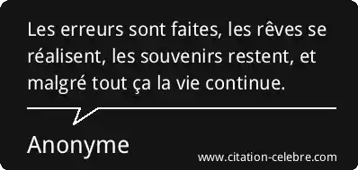 Les erreurs sont faites, les rêves se réalisent, les souvenirs restent, et malgré tout ça la vie continue.