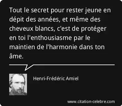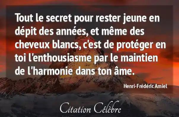 Tout le secret pour rester jeune en dépit des années, et même des cheveux blancs, c'est de protéger en toi l'enthousiasme par le maintien de l'harmonie dans ton âme.