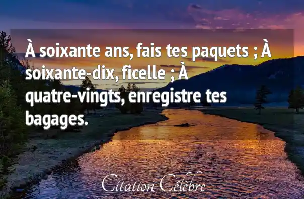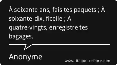 À soixante ans, fais tes paquets ; À soixante-dix, ficelle ; À quatre-vingts, enregistre tes bagages.