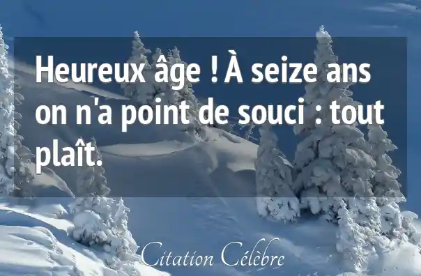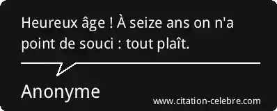 Heureux âge ! À seize ans on n'a point de souci : tout plaît.