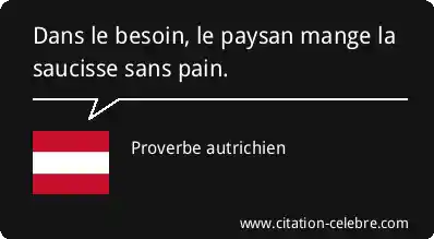 Dans le besoin, le paysan mange la saucisse sans pain.