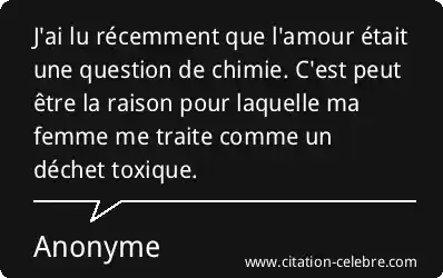 J'ai lu récemment que l'amour était une question de chimie. C'est peut être la raison pour laquelle ma femme me traite comme un déchet toxique.
