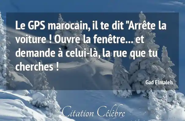Le GPS marocain, il te dit "Arrête la voiture ! Ouvre la fenêtre... et demande à celui-là, la rue que tu cherches !