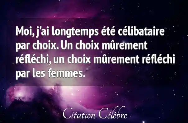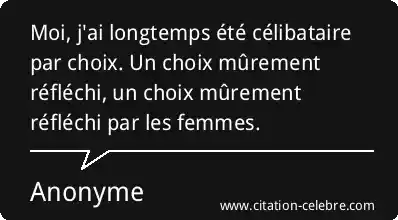 Moi, j'ai longtemps été célibataire par choix. Un choix mûrement réfléchi, un choix mûrement réfléchi par les femmes.